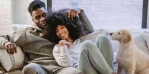 • Buy a giant bean bag where you can both cuddle in and watch cheesy movies together